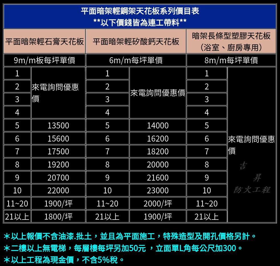 輕鋼架天花板價格 - 輕隔間價格 - 暗架天花板價格
